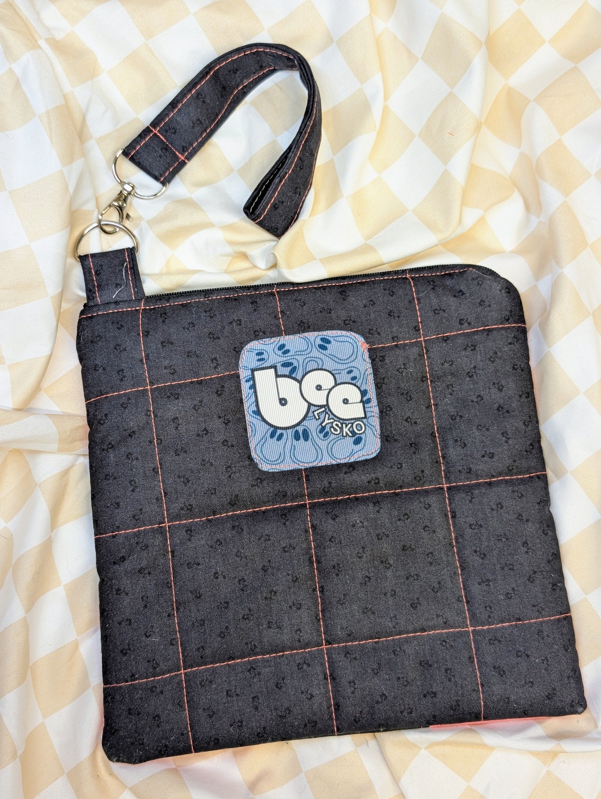 The words on the quilt piece are hand printed.