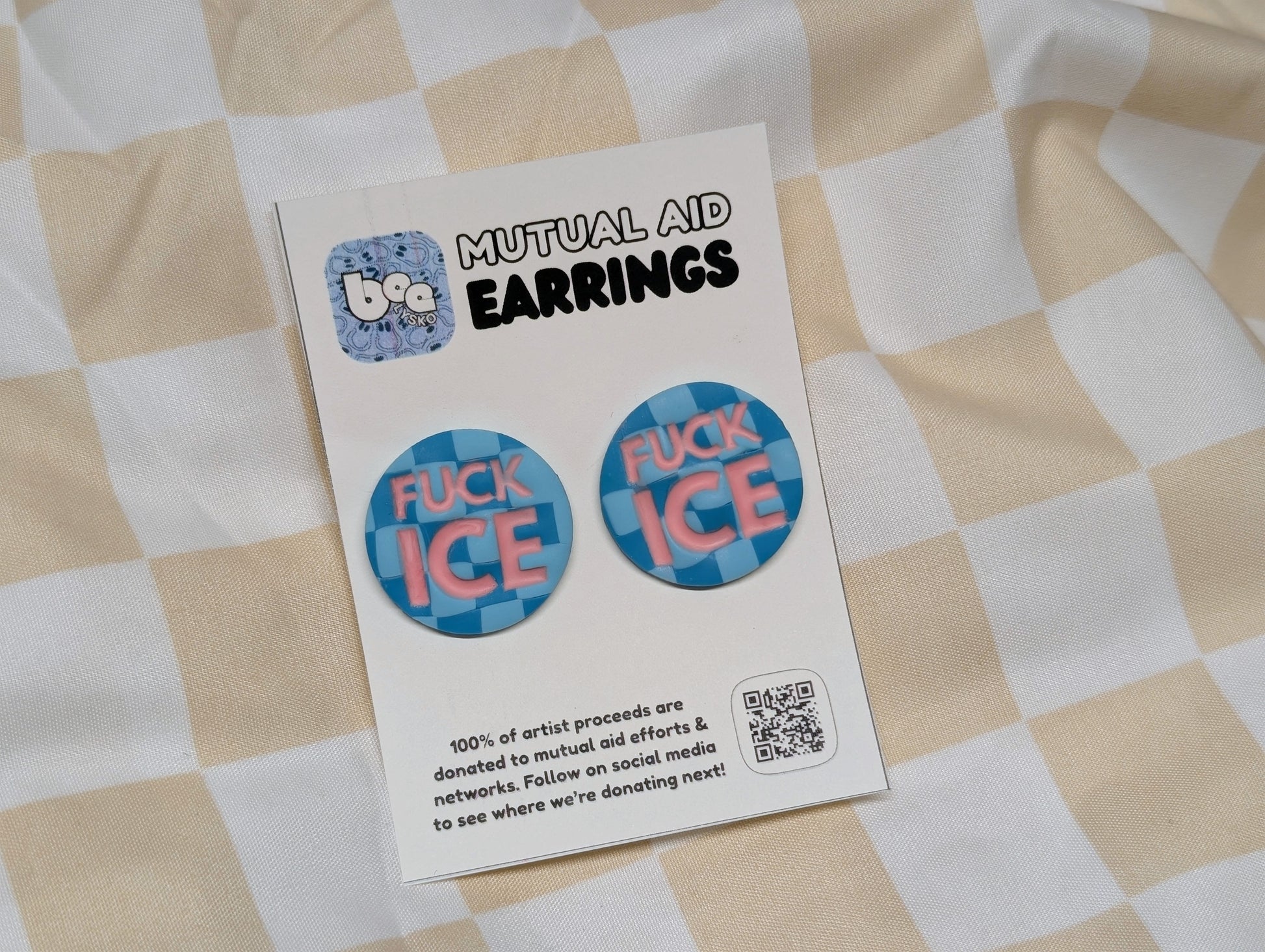 FUCK ICE Studs - Blue Checks