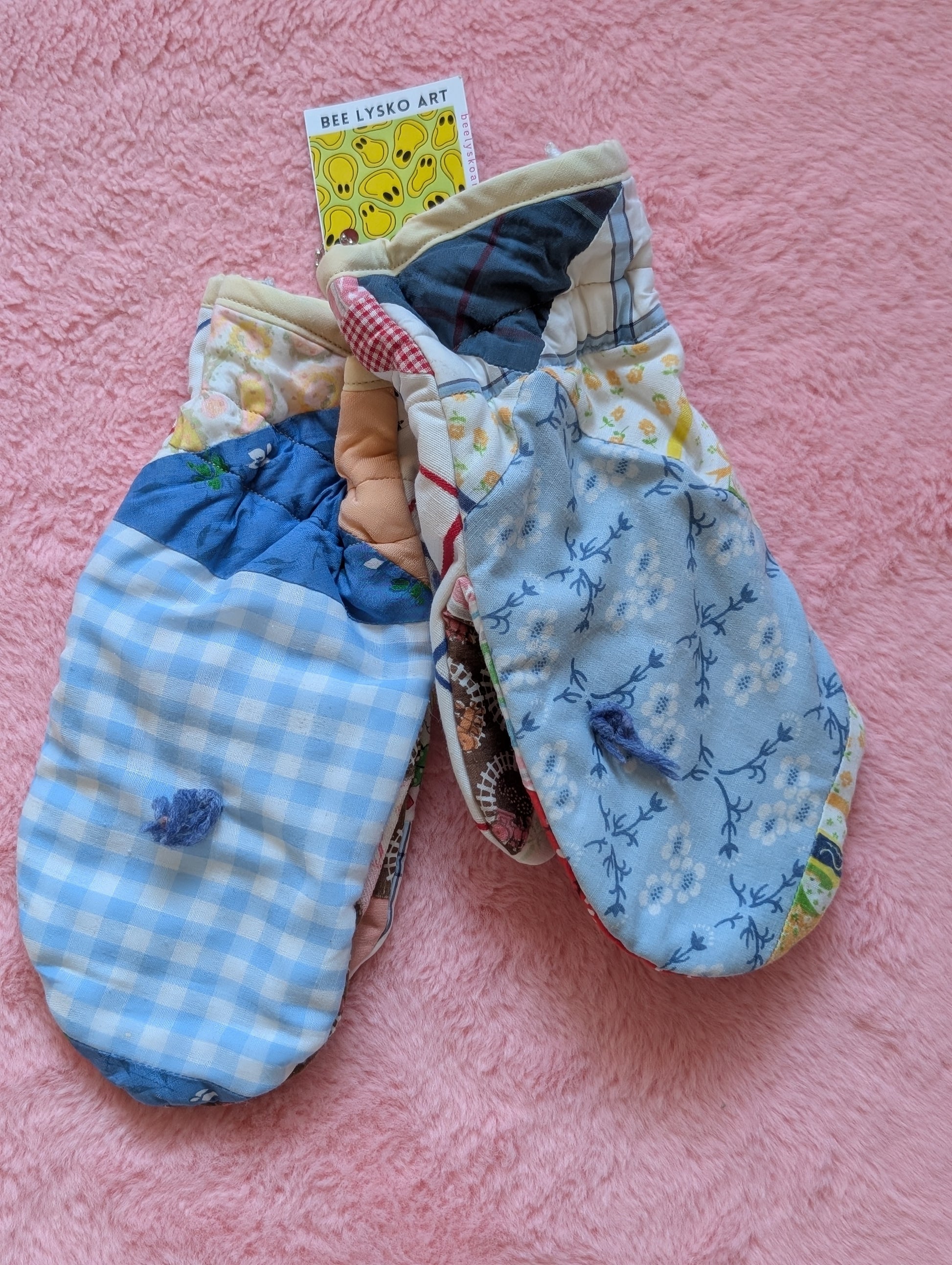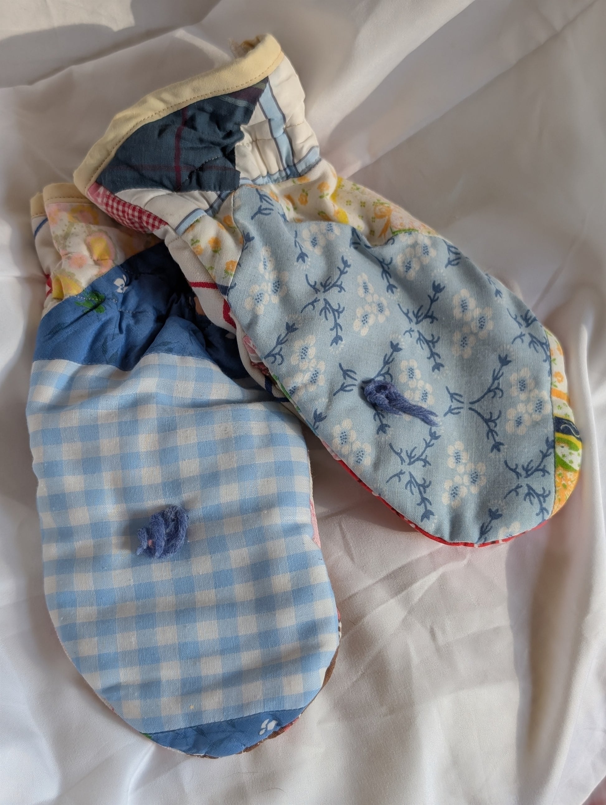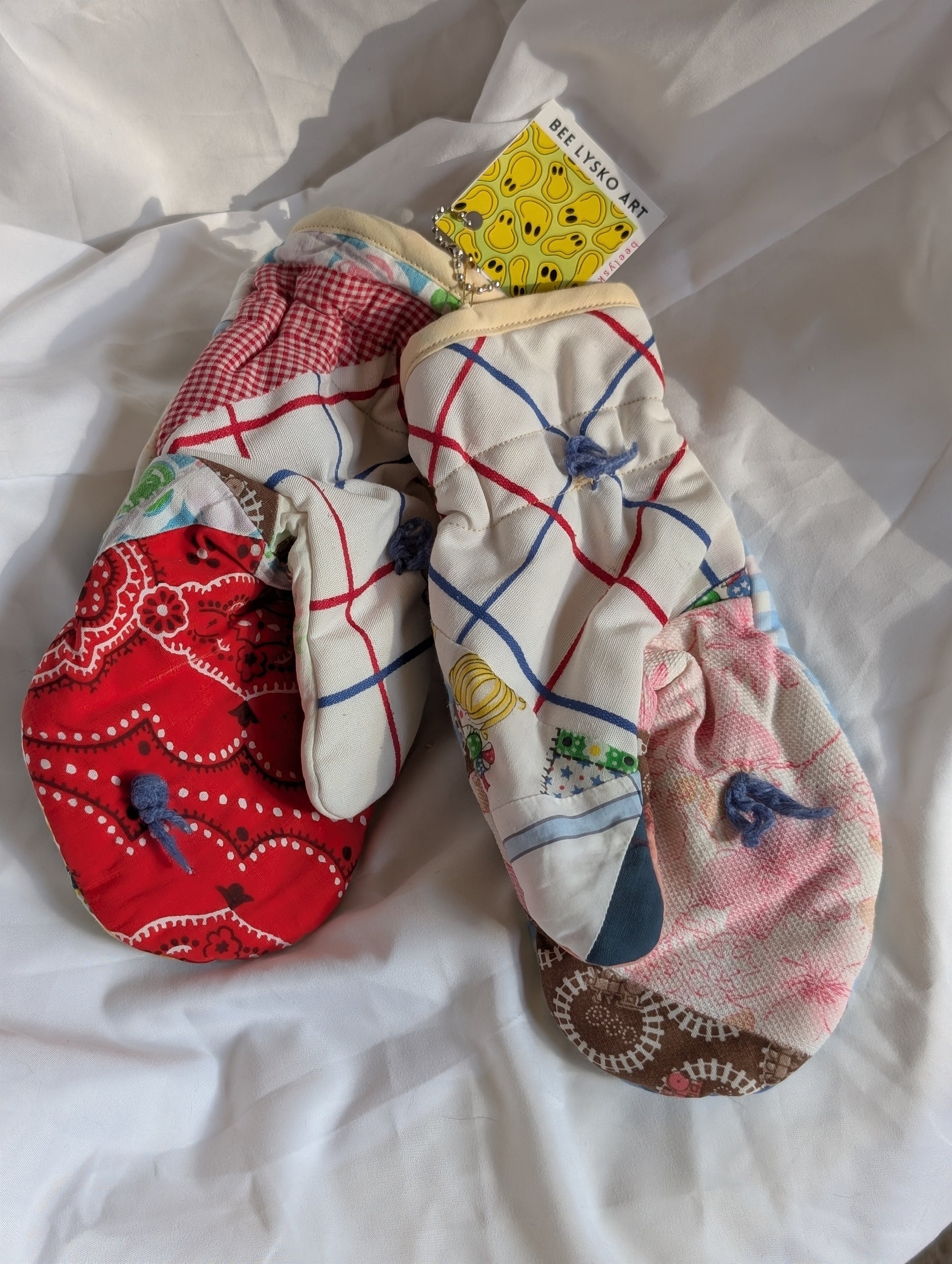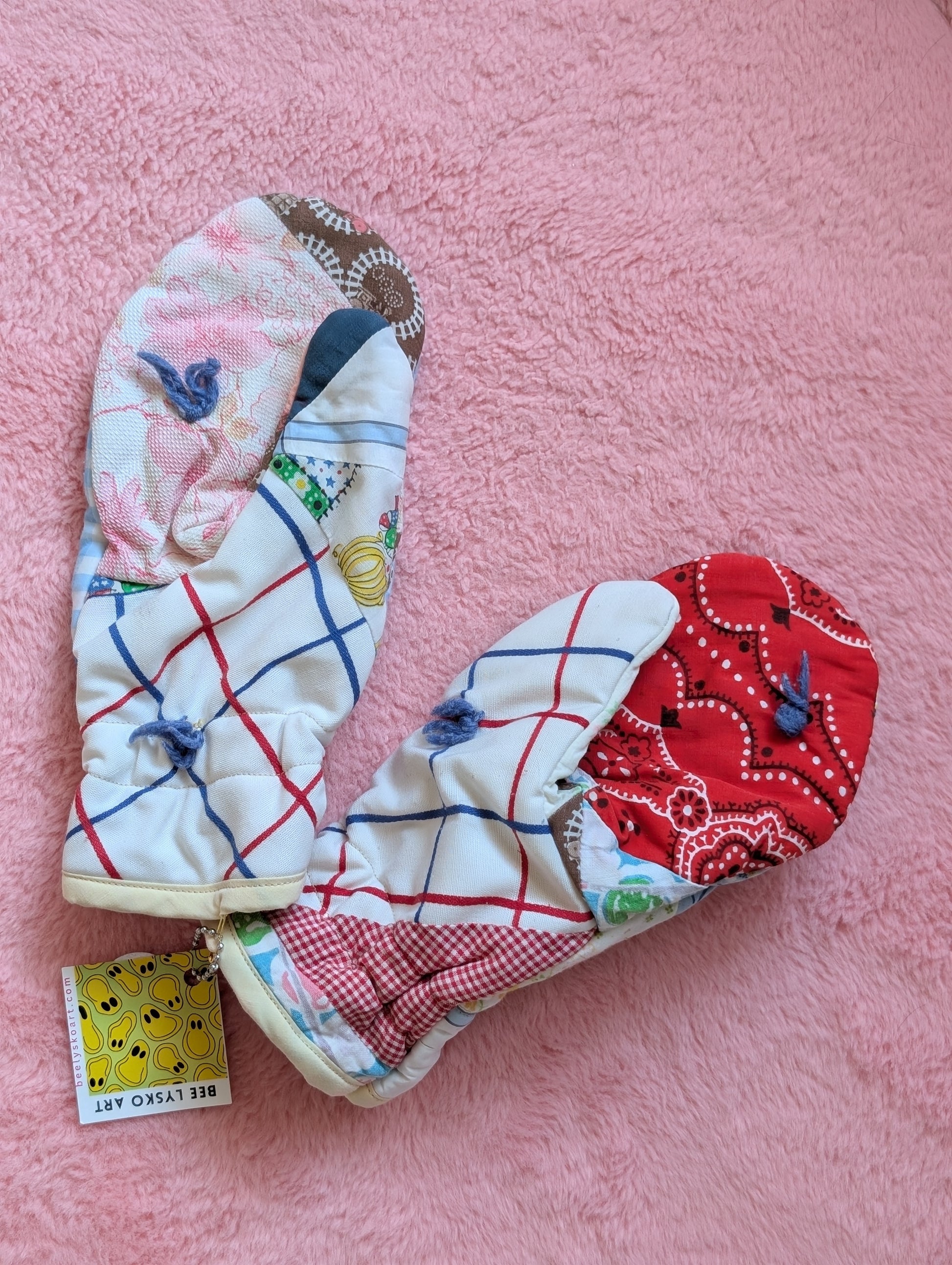 These adorable mittens were upcycled from a vintage quilt! They measure approximately 10 inches from top to bottom, and approximately 4.5 inches at their widest point.