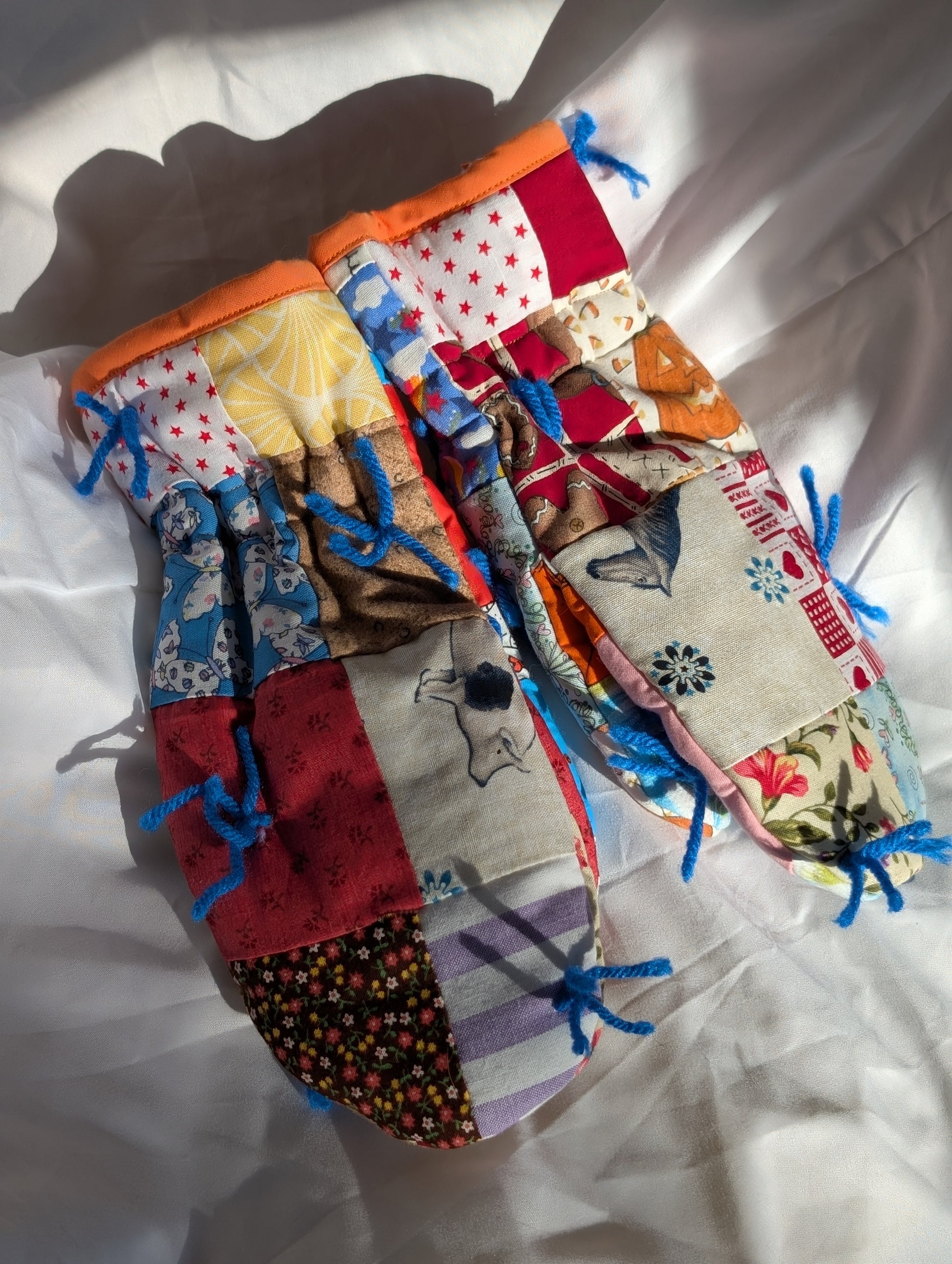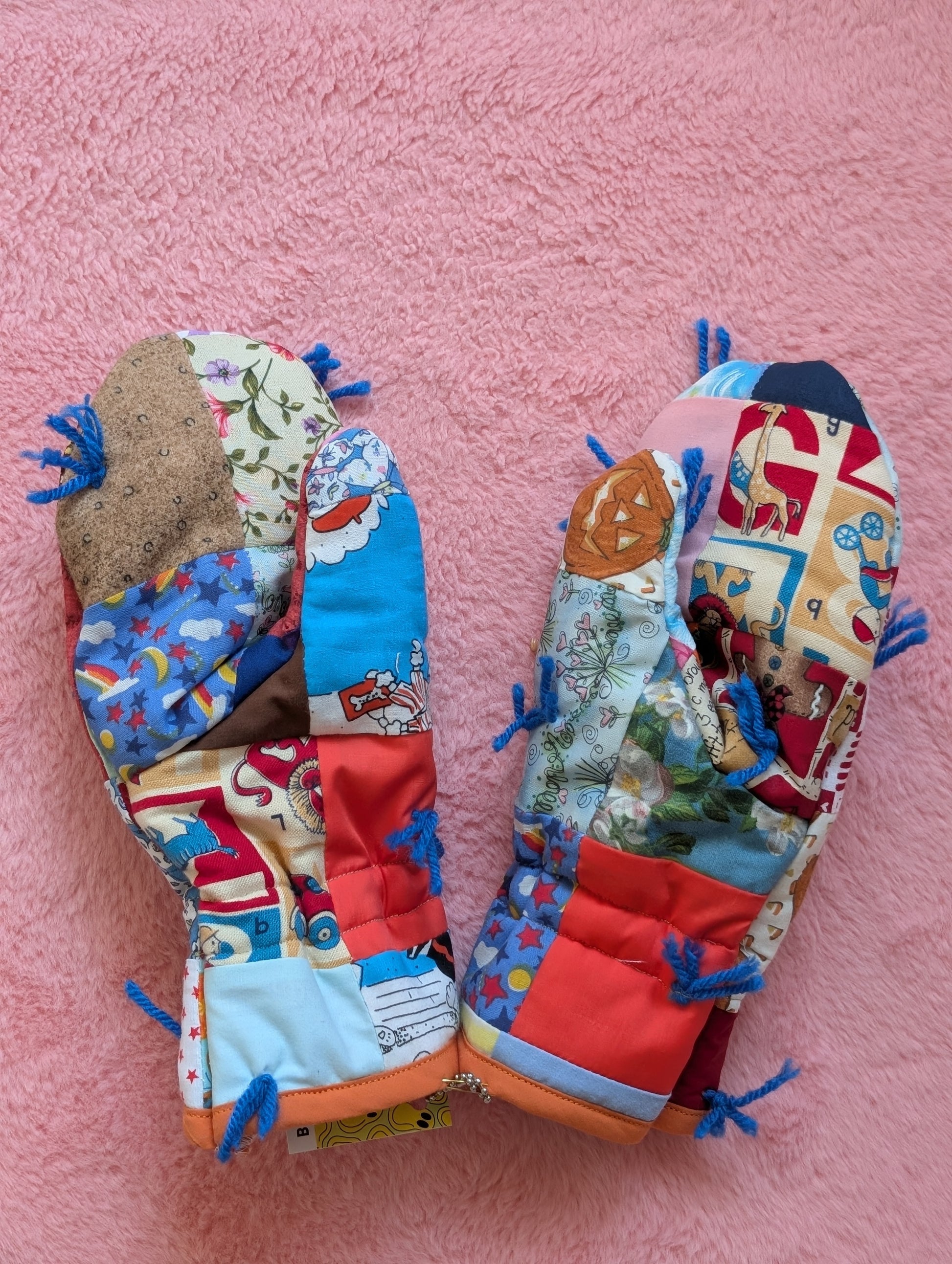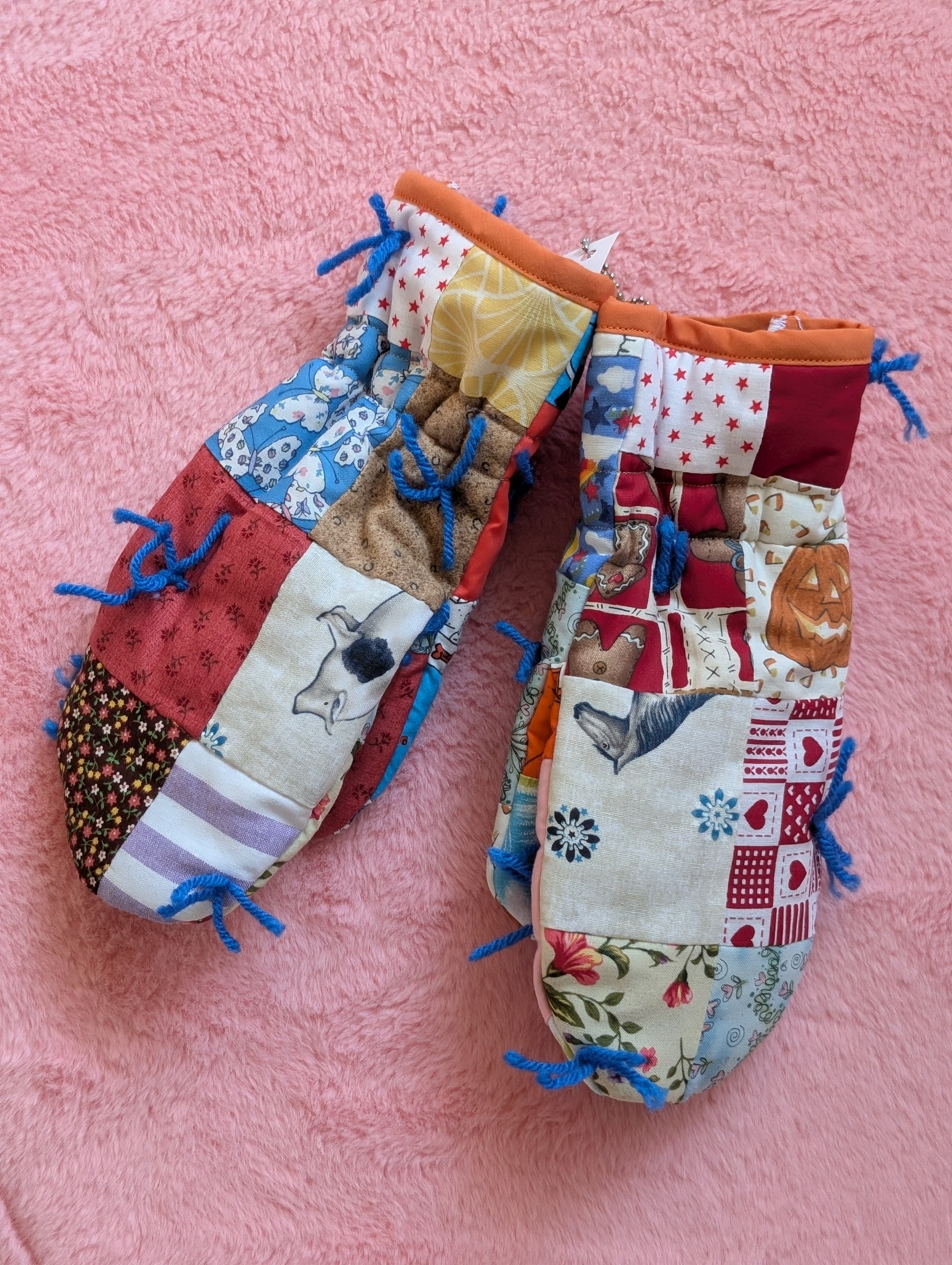 These adorable mittens were upcycled from a vintage quilt! They measure approximately 10 inches from top to bottom, and approximately 4.5 inches at their widest point.